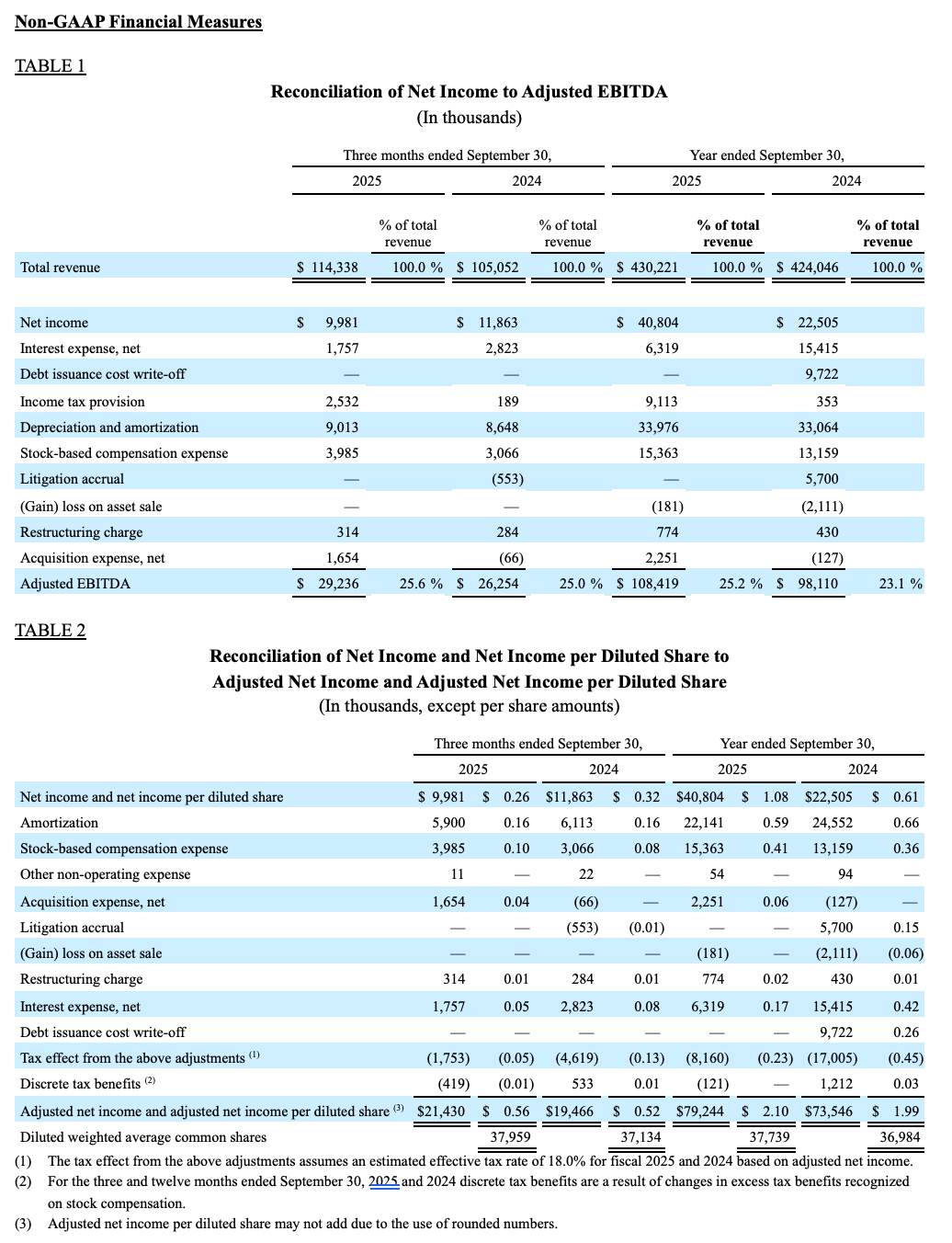 Para el primer trimestre fiscal, los ingresos se estiman entre 114 y 118 millones de dólares. El EBITDA ajustado se estima entre 28,5 y 30 millones de dólares. Se prevé que el beneficio neto ajustado por acción diluida se sitúe entre 0,53 y 0,57 dólares por acción diluida, suponiendo una media ponderada de acciones diluidas de 38,4 millones de acciones.